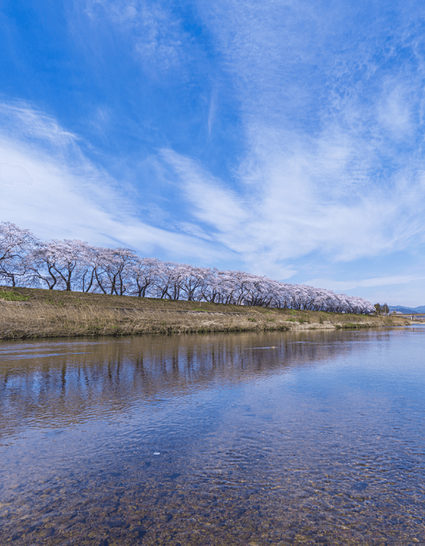 春には請戸川リバーラインの桜、秋にはあたり一面に咲くコスモス、海に目をやれば、豊富な海の幸が水揚げされる請戸漁港。走り駒の絵柄の「大堀相馬焼」、B1グランプリでゴールドグランプリに輝いた「なみえ焼そば」に、銘酒「磐城壽」。